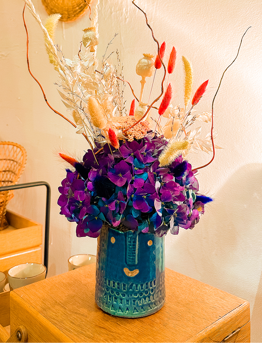 Des créations artisanales et éco-responsables, prêtes à éclore chez vous. Bouquets de fleurs séchées, couronnes et objets décoratifs, réalisés à la main dans mon atelier à Montpellier.