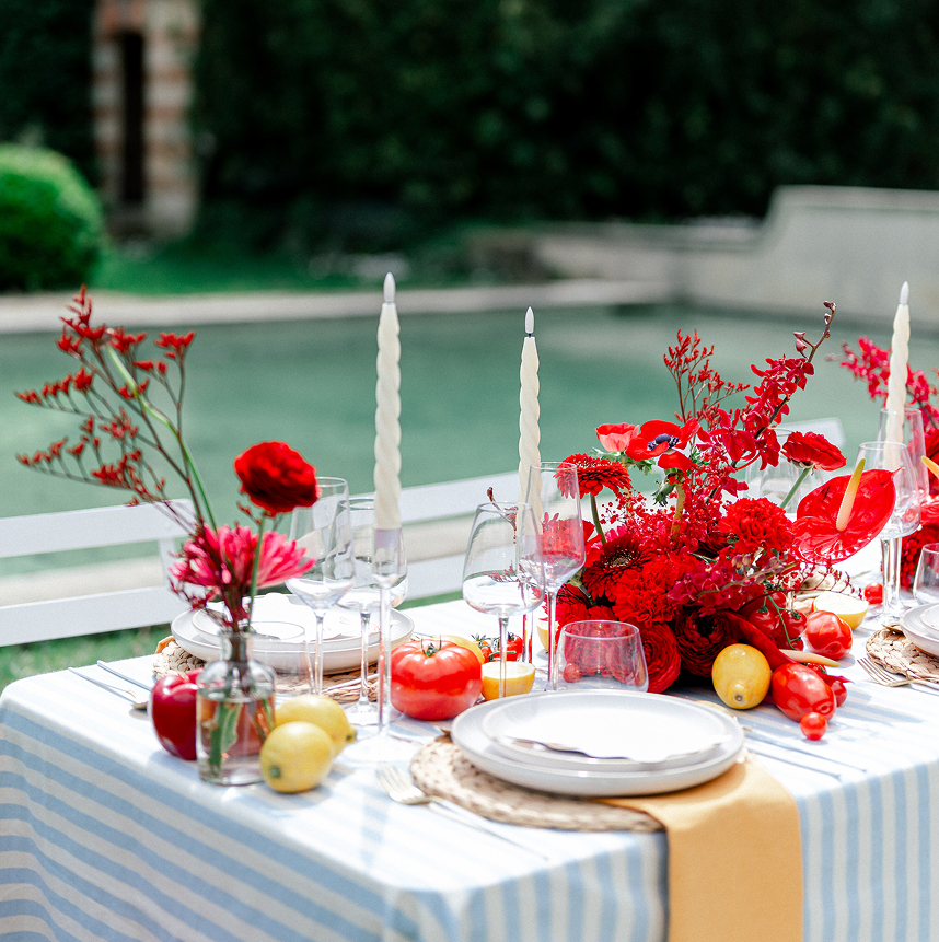 Direction artistique complète, scénographie et bouquets pour mariages.